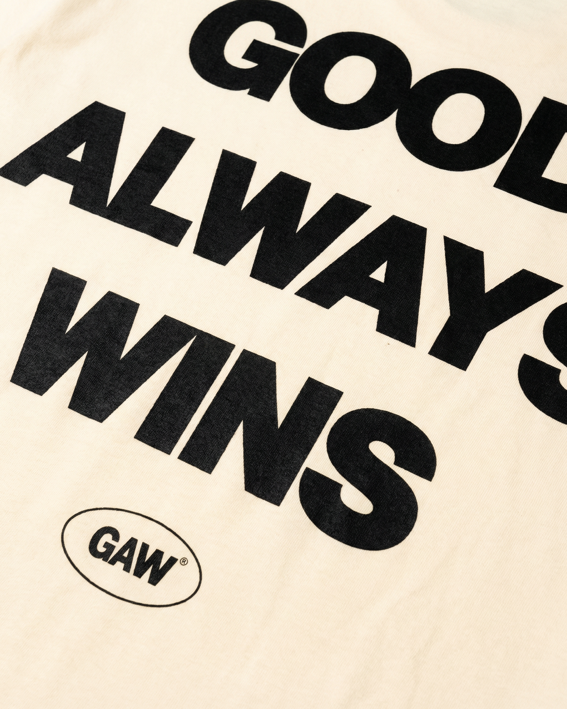 Featuring a bold "GOOD ALWAYS WINS" statement across the back, this cream tee is a clean essential that's bringing GAW back to your daily kit. It’s the perfect balance of low-profile branding and high-impact values